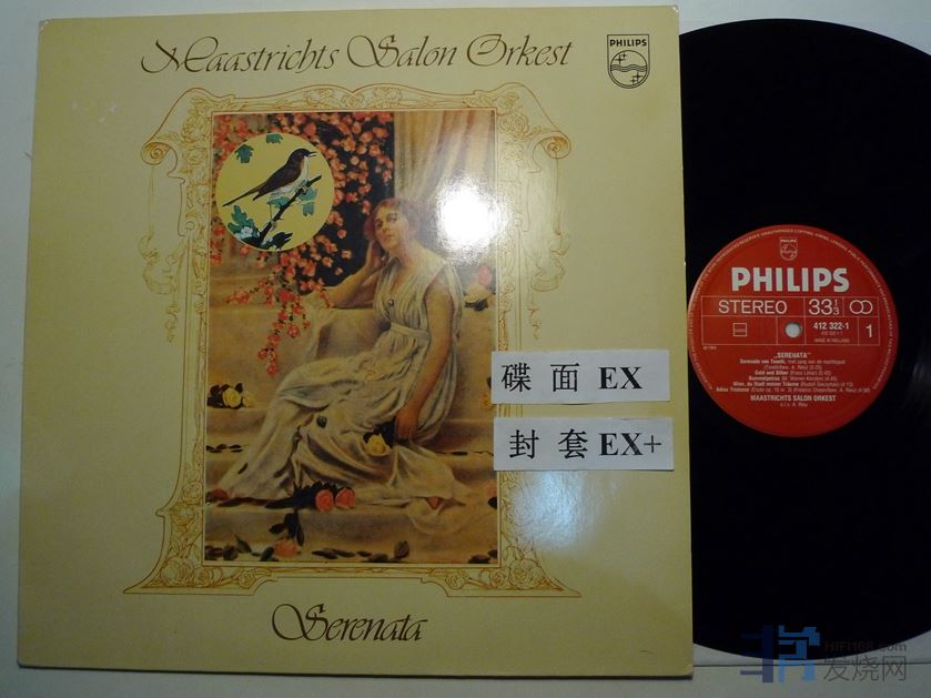 马斯垂克特沙龙大乐队演奏的“夜莺小夜曲”,飞利浦红白标,荷兰压片,首版,碟面没有划痕,只是表面细纹和擦痕有点多,但是对声音影响不大,播放还是比较安静,只是有些零星的轻微滴答声,主要在第二面,750块