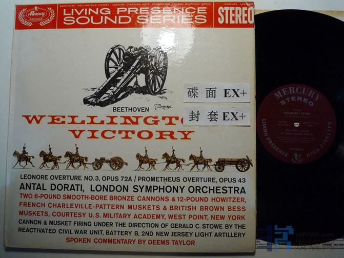 多拉蒂指挥贝多芬“威灵顿公爵的胜利”,“普罗米修斯序曲”,“莱奥诺拉序曲”,碟面有些表面痕迹,播放比较安静,只是两面的开头有点轻微底噪,第一面很轻微,第二面明显一些,美国压片,水星唱片,首版,150块