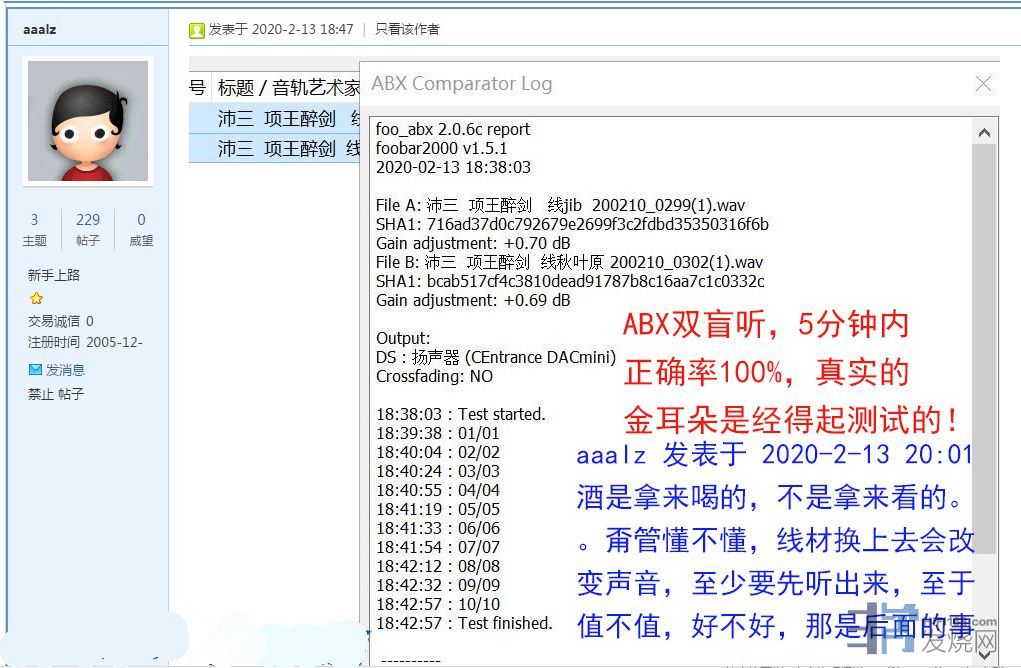 线材咬卵犟,听听怎么样?国际双盲听,肉耳来辨声,烧友藏在心,专怼来犯小杠精http://bbs.hifi168.com/bbs/showtopic-252108.aspx