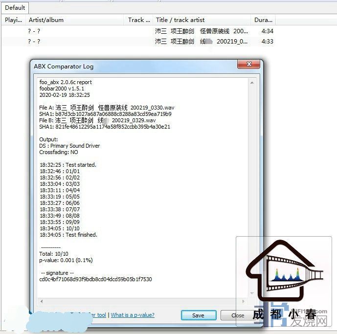 牛一刀 发表于 2020-2-19 10:37刚看到这个帖子时就下载来,按自己的方法盲听,感觉可以听出差别,开始还是挺准确的,只是连续听就糊涂了。隔一段时间再听,也是刚开始准确。今天下载了插件,按ABX盲听测试,追求第一感觉,速度很快,大概五分钟结束。设备是垃圾9038DAC加耳机,也就500元的设备,自己觉得结果挺有意思,看来就是不能连续听。