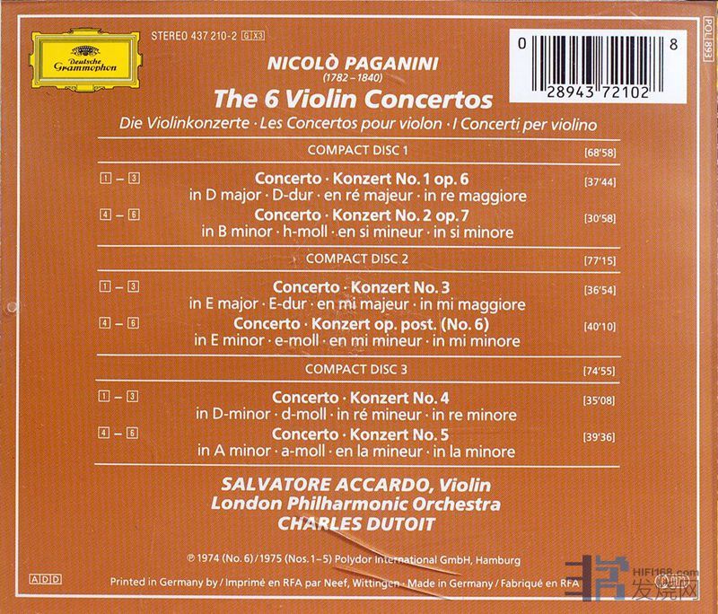 1元起拍!DG 帕格尼尼六首小提琴协奏曲 3CD/Salvatore Accardo ...