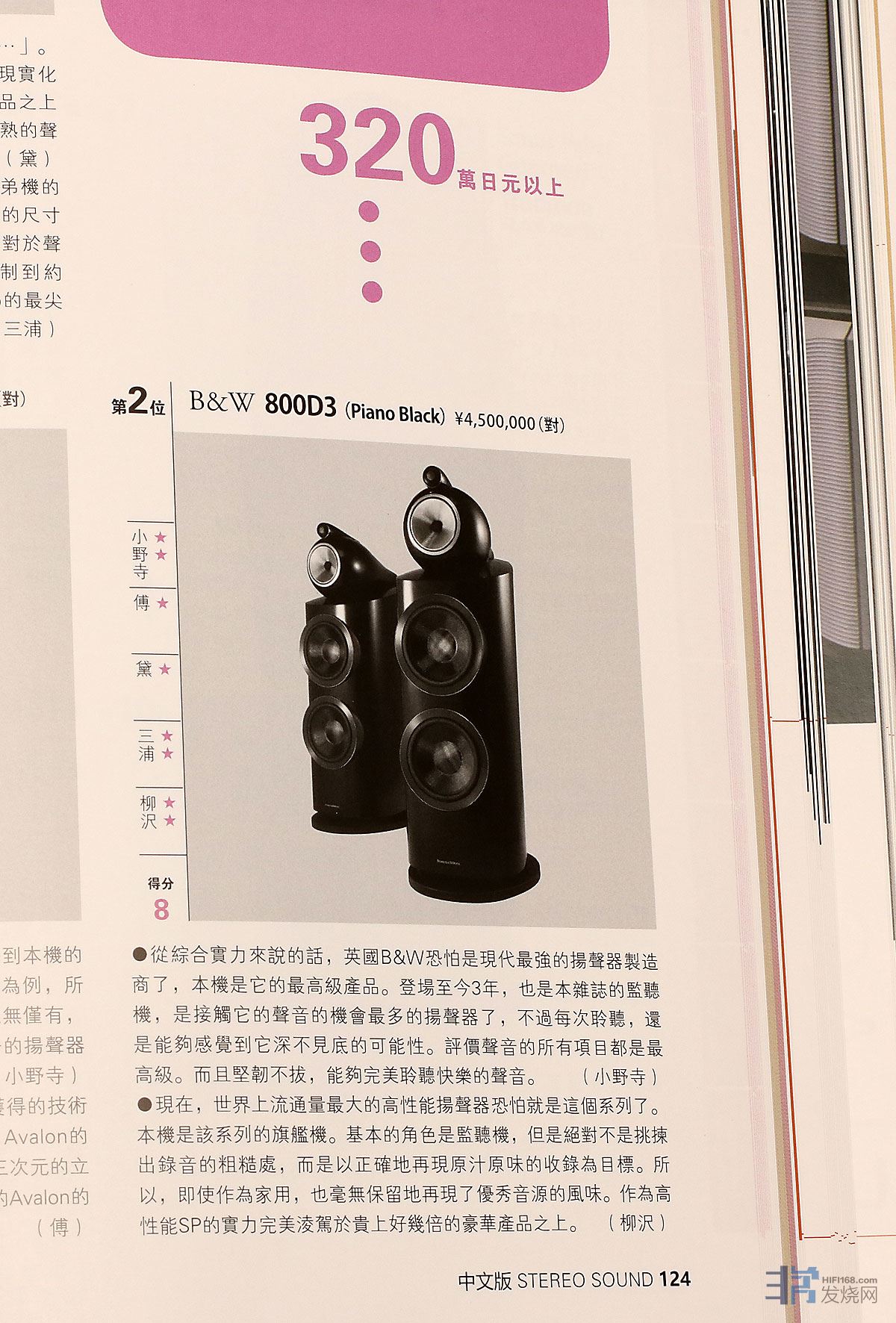 宝华800D3获320万日元以上评选第二名。