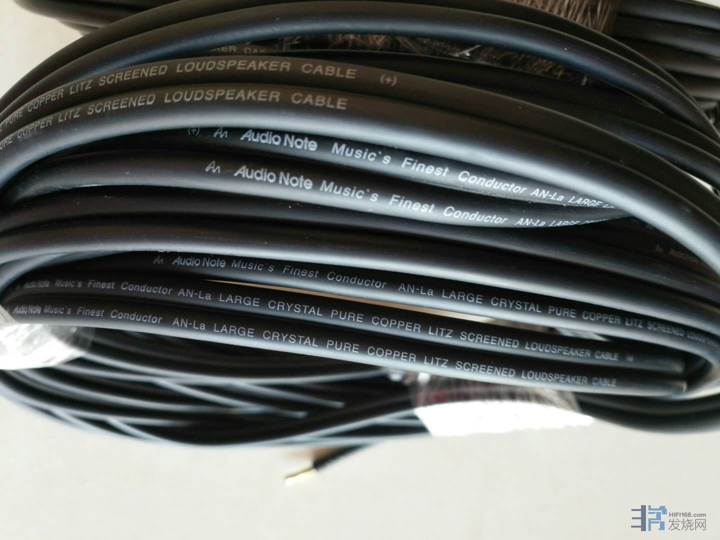 因系统位置调整,出国行保真99新 Audio Note AN-La 李玆喇叭线,双线分音8米,总长共计32米,线头用德国WBT铜套处理,广州力高名线屋制作。电话:138 7315 3058 章先生