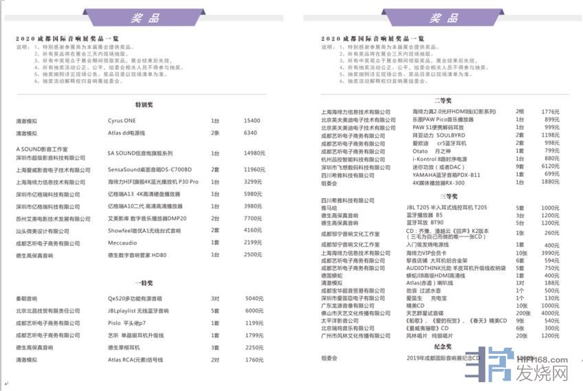 2020成都国际音响展参展企业为现场观众提供了丰富的奖品,凡是提前报名的观众都可以参与现场抽奖,奖品一览如下: