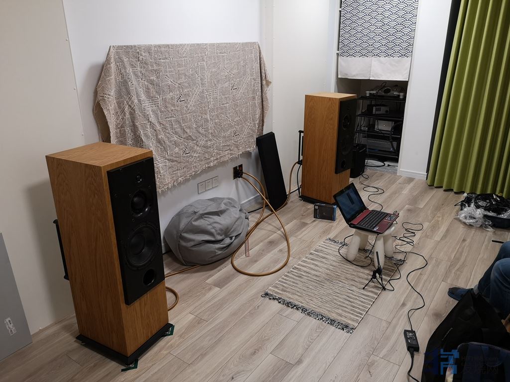 以前有独立的听音室,自己折腾过好多摆位,长短边的更替,通过音乐或是话筒测试来调整位置等,效果很明显但一直没能找到完美的平衡,更没有一套自己的成熟流程。这次请小毛来处理,也算见识了一把专业手法。他会布置我一些“作业”,来以前先提前准备好。主要是交流现场条件,处理房间照片中看出来的问题,准备可以作为现场使用的声学物品等。他来了后,也不是马上就开声找最佳位置,而是问了我关于需求的一堆问题,以后准备怎么使用,坐哪些位置,甚至是否需要兼顾看片之类的。