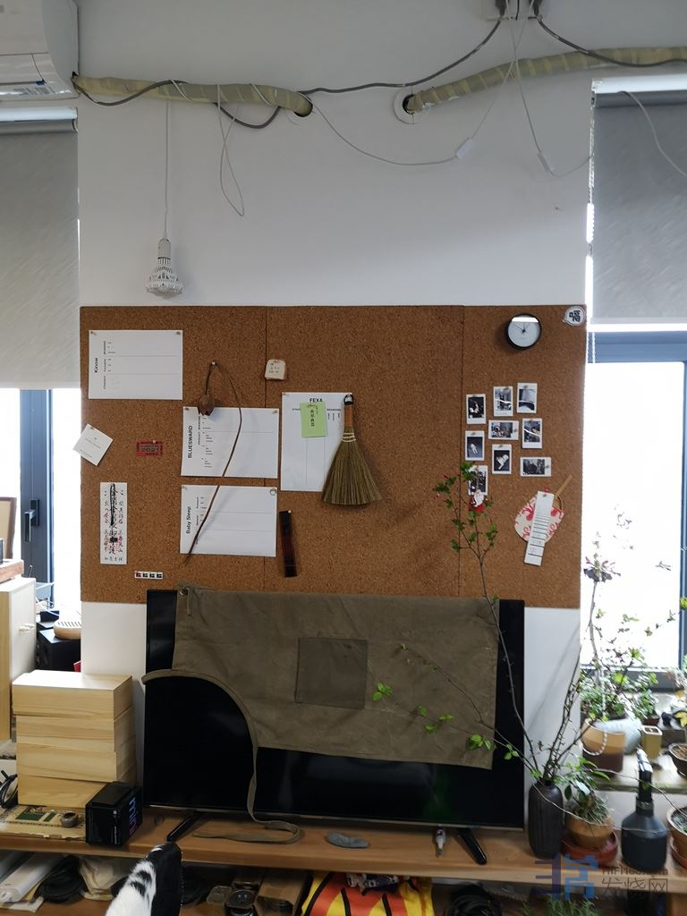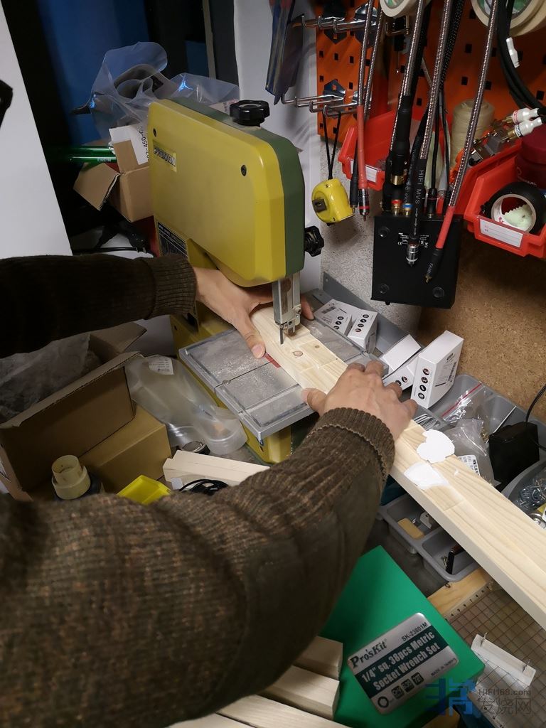 (吴先生的工作室工具齐全,可以直接切割木条用以临时固定扩散板)
