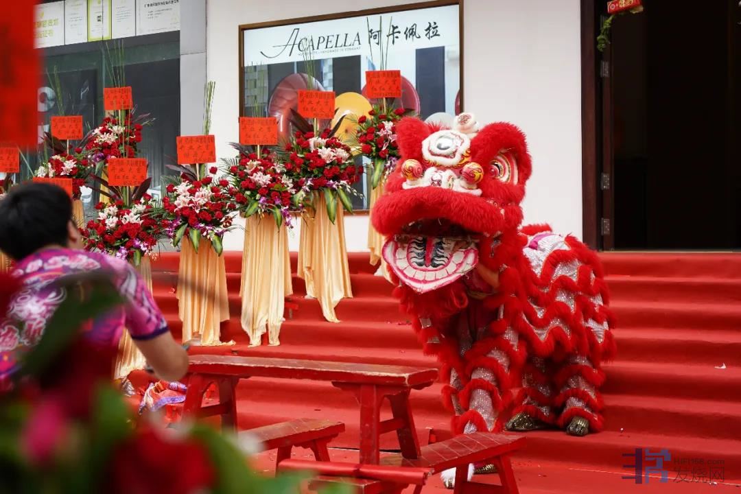 开业仪式上发烧友和业界同仁莅临庆贺,新店开张剪彩更有醒狮表演,热闹非凡。