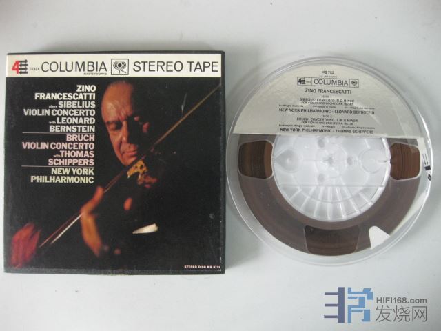 17.    4轨古典Tape 5095CBS,西贝柳斯和布鲁赫小协,小提琴-弗兰塞斯卡蒂,纽约爱乐,伯恩斯坦,美国版,立体声,4 Track 7.5 IPS,品相良好 Y580