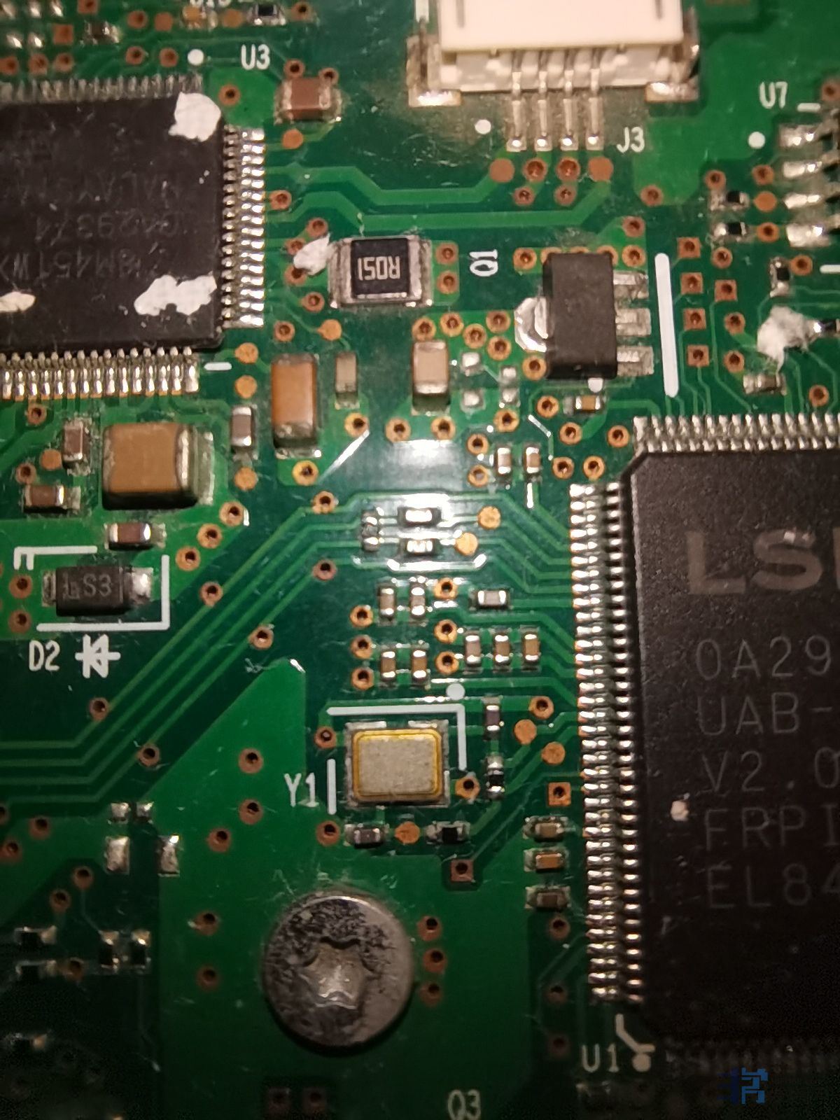 3.1拆掉无源晶振,机器对应的两颗起振电容和两颗电阻