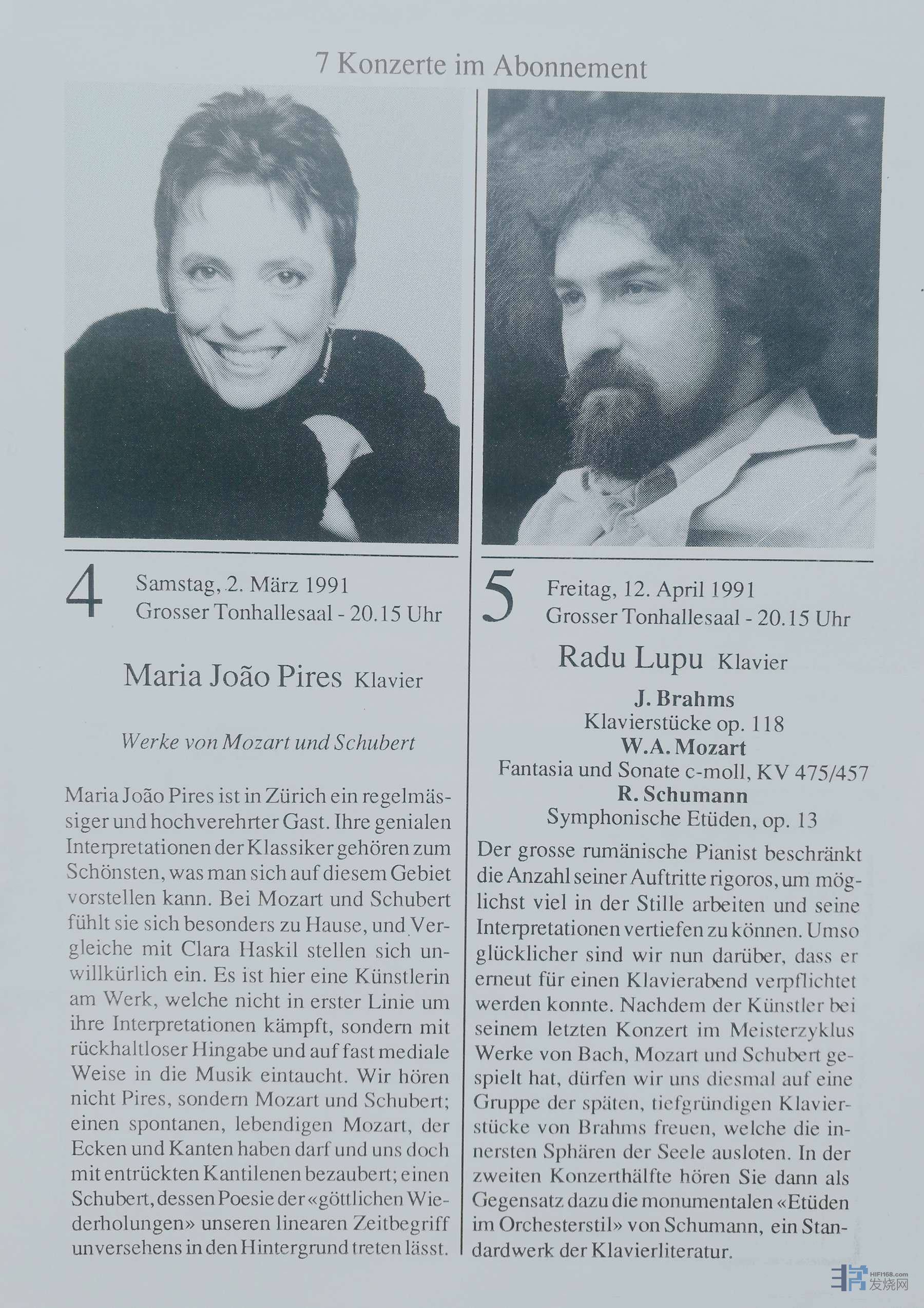 第二份资料是关于女神于199132日在瑞士苏黎世音乐厅举办钢琴独奏音乐会的介绍。曲目是莫扎特和舒伯特的作品。介绍中如此表述:在聆听女神演奏时,我们听到的仿佛就是莫扎特亦或舒伯特本尊在演奏!女神呈现的是一个真实自然,活着的莫扎特!将舒伯特作品中的诗意用“神之手” 呈现出来……