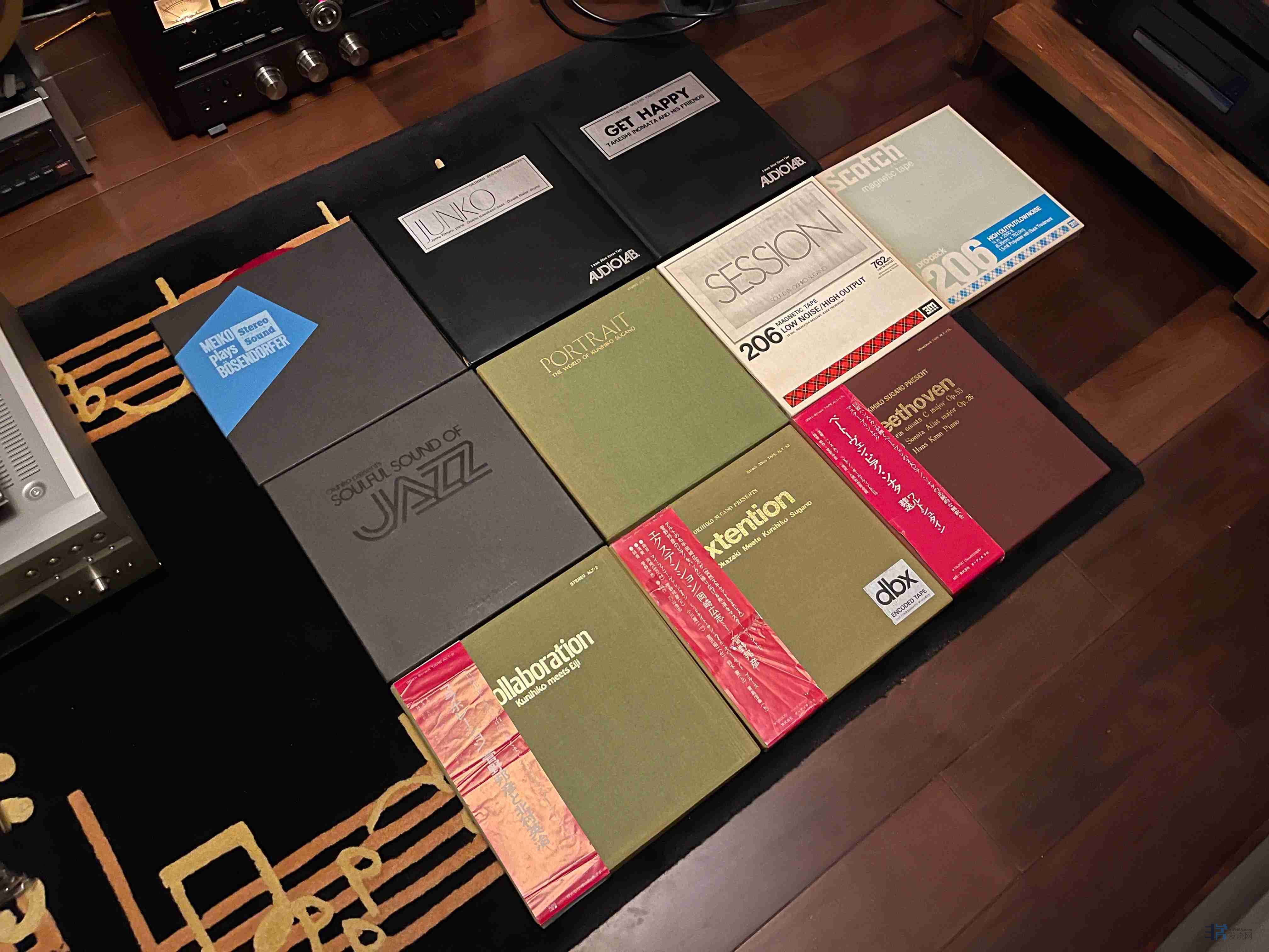 这里想和大家分享的是,除了上世纪五十年代至八十年代,以美国为主出版的商业开盘带,基本都是七寸两轨7.5速、七寸四轨7.5速的产品,日本在七十年代出版了一批十寸两轨15速的商业开盘带,应该属于模拟录音的天花板了,而且看资料说明,这些十寸商业开盘带基本是母带的第三代产品,也就是母带-工作带-商业开盘带,音质也是应该最好的和最接近母带的,实际的听感、和同版本黑胶对比的结果也证明了这一点。