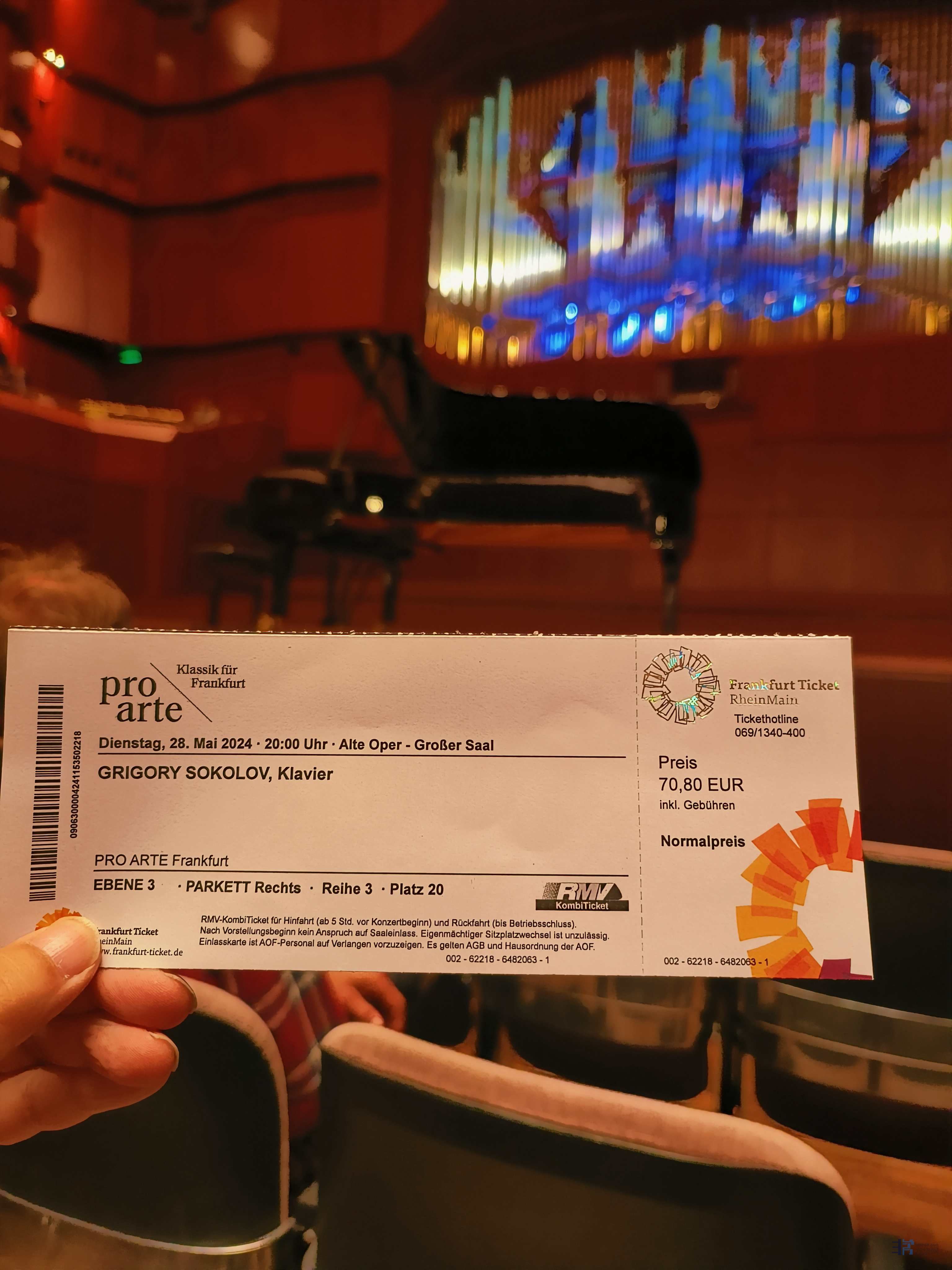 与一些开演前一小时我才去售票处寻觅乐友转让的优惠门票不同,索神的这场门票,我在一个多月前抵达德国时,便去售票处挑选了第一档位,位于第三排的位置。当然,在欧洲聆听音乐会的成本较之上海,要经济实惠的多。