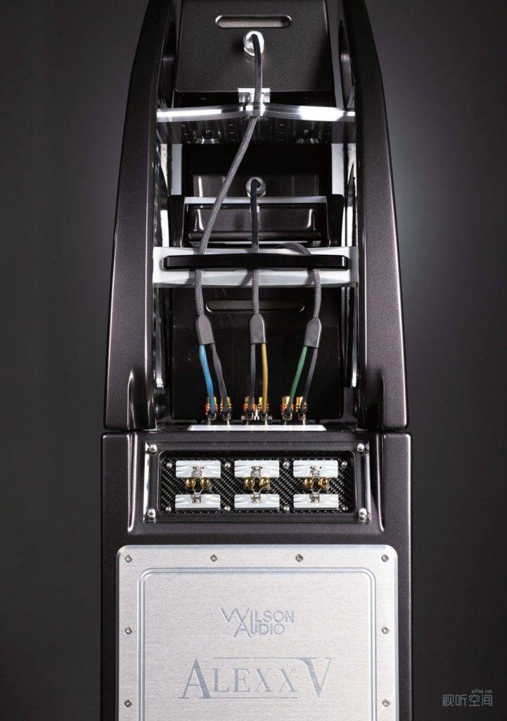 Wilson Audio还特别重视喇叭单元的配置。他们不仅自己研发高质量的单元,还特别讲究怎么配置这些单元。他们的旗舰产品经常会用2个或以上不同大小的中音和2个不同大小的低音。Alexx V就用了1个新一代的Convergent Synergy Carbon (CSC) 高音单元,让高频更宽广、更线性,还能给你一种被声音包围的感觉,高频细节也非常丰富,听起来就像丝绸一样顺滑。还有2个不同大小的中音单元,一个是5.75英寸的,另一个是他们独家开发的7英寸复合纸质振盆中音,这个中音用了AlNiCo(铝、镍、钴)QuadraMag四个独立磁铁的磁路设计,让中音的信息量和音乐感都更强了。还有2个不同大小的低音单元,分别是10.5英寸和12.5英寸,让Alexx V的低音能低至20Hz!这是人耳能听到的低频极限了,能呈现出很多其他音箱都呈现不出来的极低频。