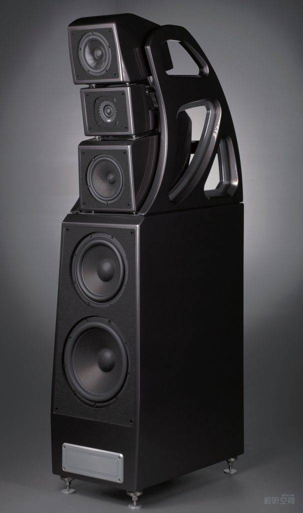 Wilson Audio的音箱,除了最小的TuneTot书架式音箱和最小的落地箱Sabrina V,其他都是模块化设计的。基本上每个喇叭单元都有自己独立的箱子,这样不但不会互相干扰,还可充分运用厂方的“时间对齐校准”的理念来调整音箱了。我这次听的Alexx V,就是3分频5单元的设计,有1个高音、2个不同直径的中音和2个不同直径的低音。音箱上面部分配置2个中音和1个高音,按哑铃式排列,而且都有自己独立的箱体。剩下的2个低音就装在下部分巨大的箱体里。