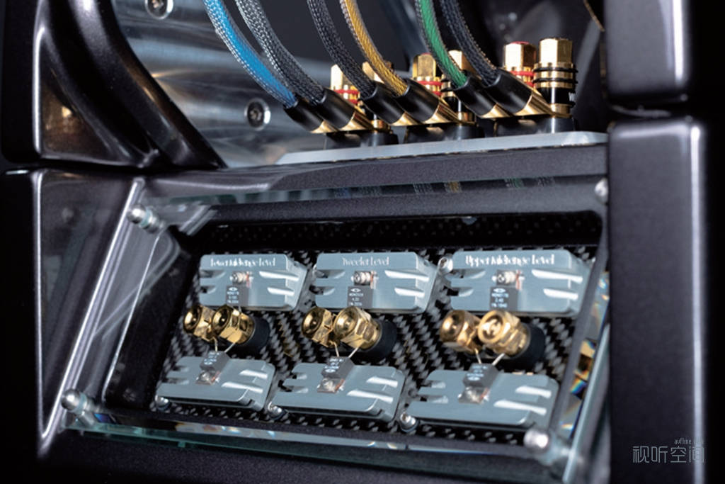▲ AlexxV 音箱背部上方,每部分都通过高素质的端子与连线进行连接