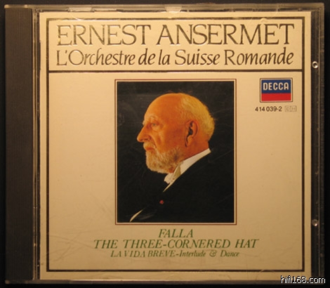 早在1985年,Decca就挑选了Ansermet的一些最优秀的录音,以正价版的形式出版了CD,据我目前所知,关于Ansermet的共有10款,三角帽的这款如下: